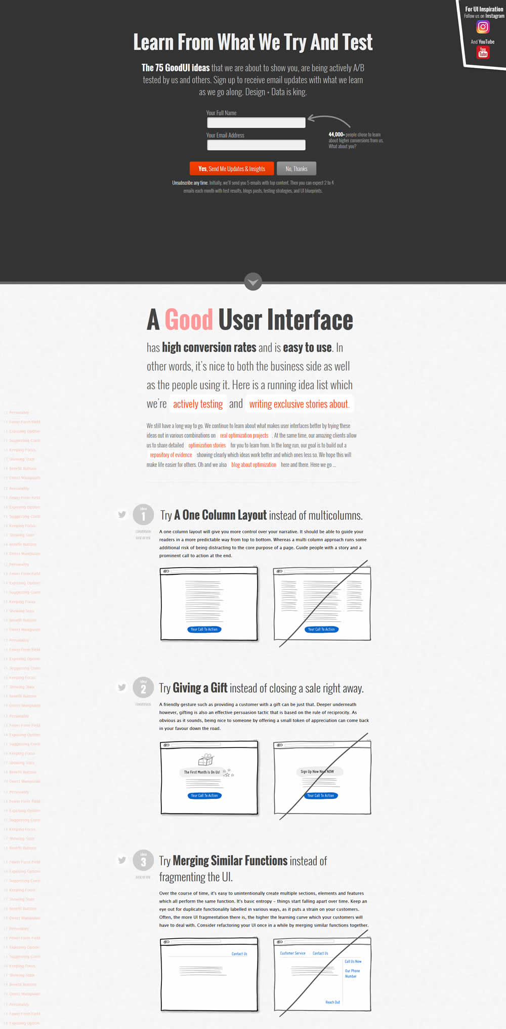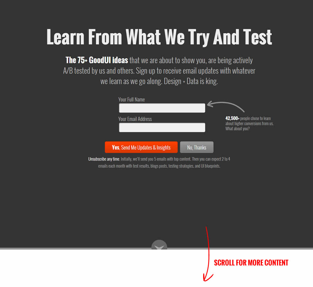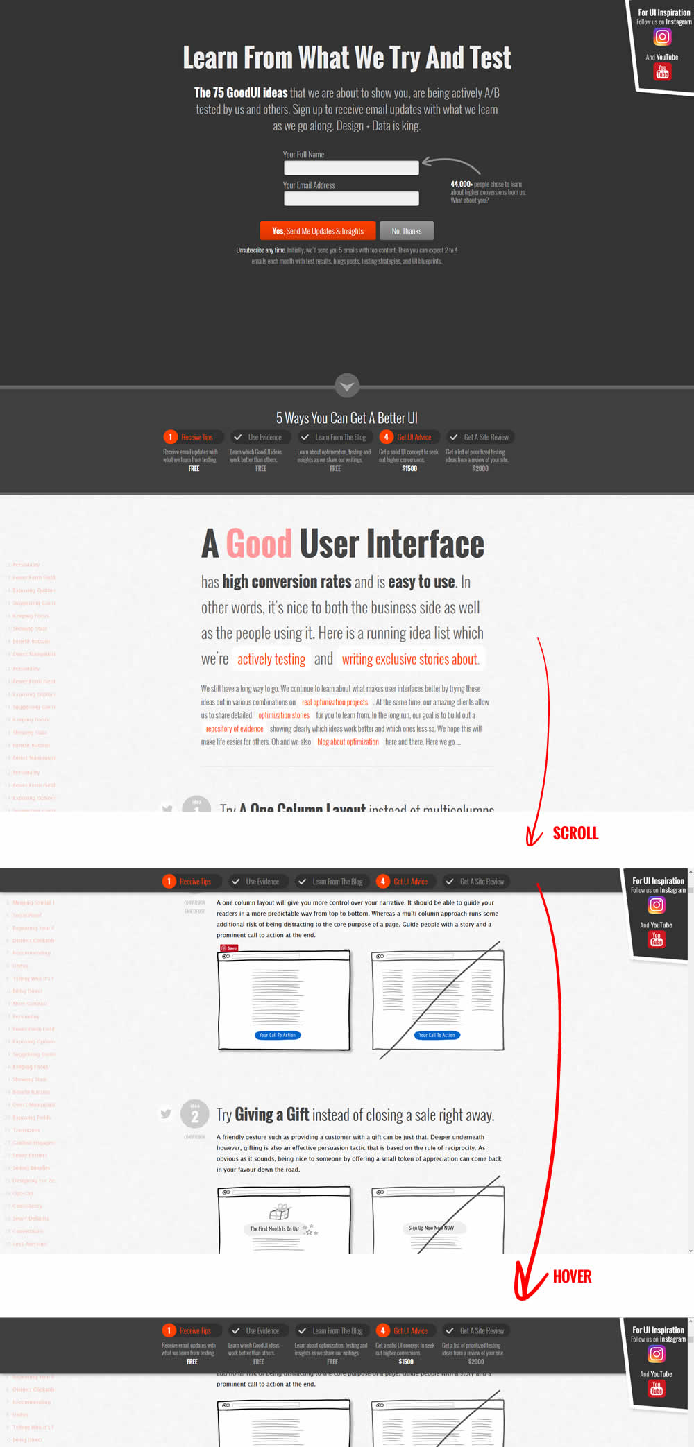 Jakub Linowski Tested Pattern #41: Sticky Call To Action In Test #64 On Goodui.org