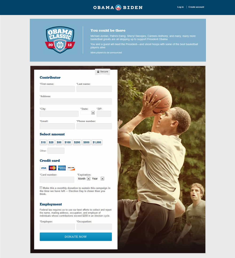 Kyle's team changed a donation form for the Barack Obama 2012 campaign from a single step to a 4 step one. The 4 steps were: amount, personal information, billing information and occupation/employer.