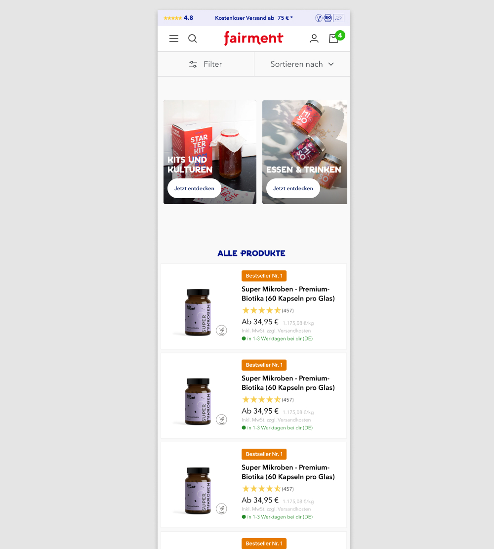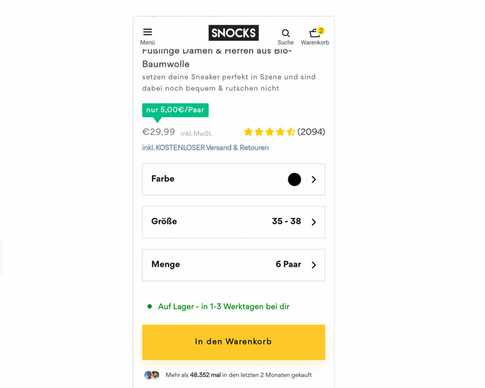 In this experiment, free shipping was a/b tested against free shipping with a 40€ purchase or higher. Hence, in the variation, customers needed to reach a cart amount total in order to be eligible for the free shipping.