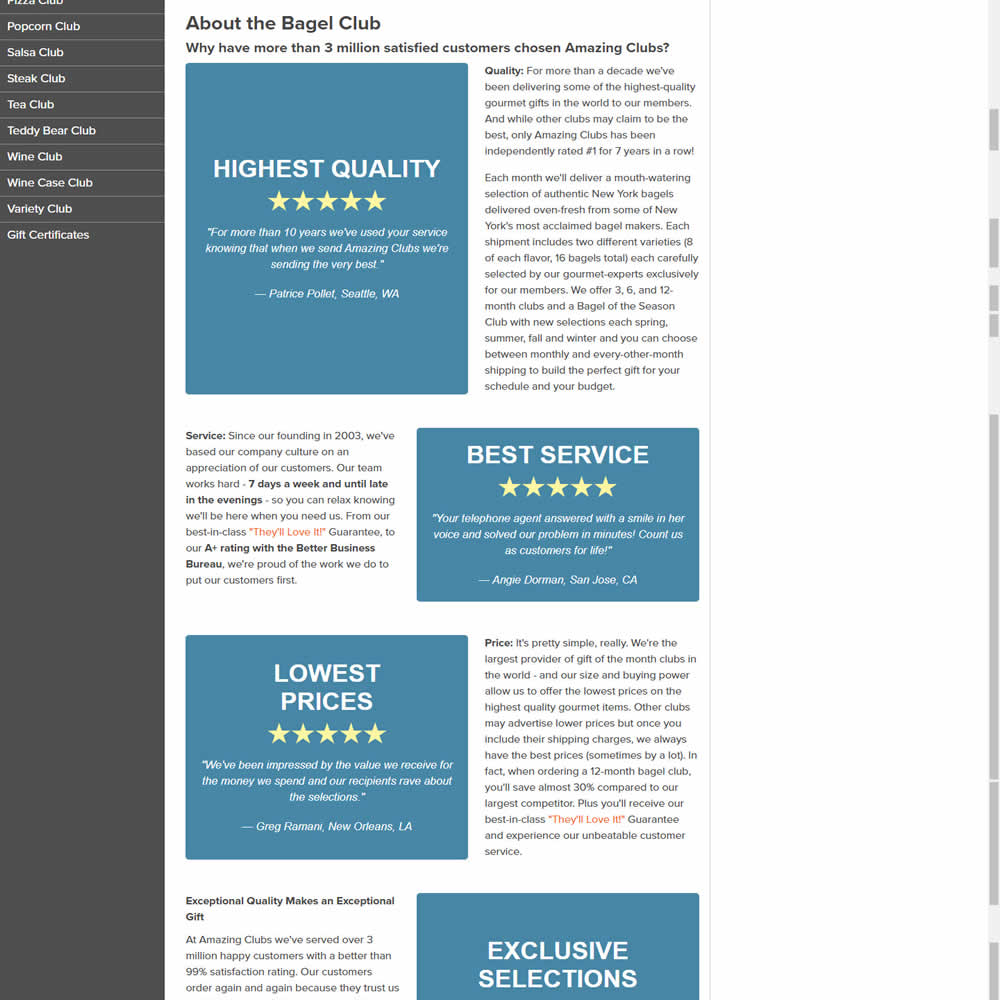 In this experiments, reinforcing section tiles were replaced with additional customer testimonials. Impact on adds to cart and sales was measured.