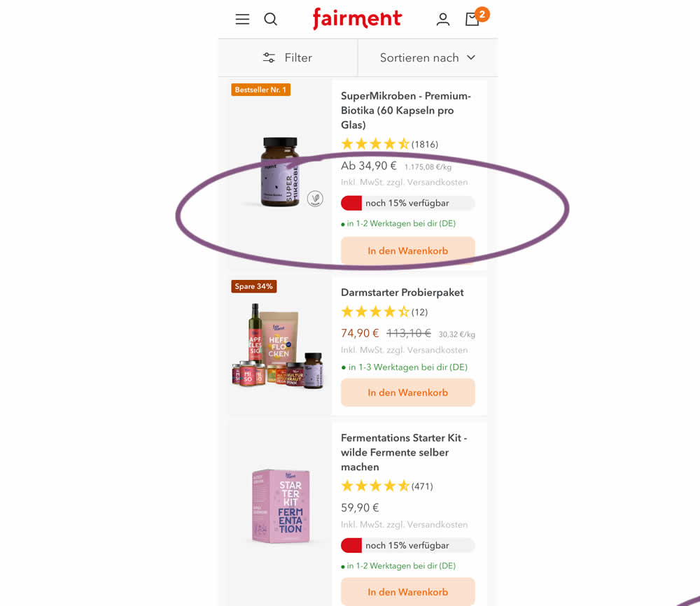 In this experiment, product availabiltiy bars were shown on products with low stock. This was shown on listing pages. Impact on adds to cart and sales was measured.