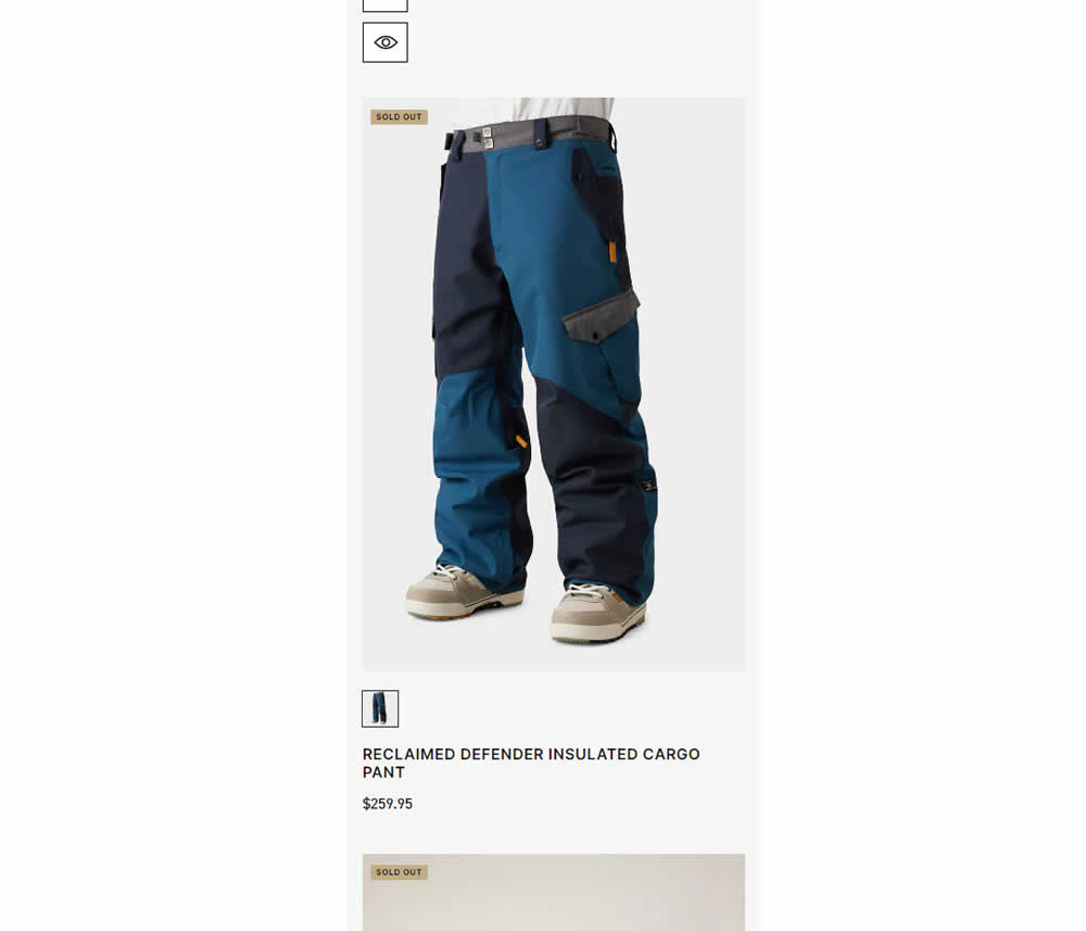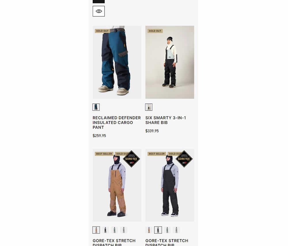 In this experiment, a two column grid layout (control) was tested against single column layout (variation) with the product information shown to the right. Please note that the screenshot shows repeated products only because it's been sourced from a Figma design file. In reality, the products in the variation were equally diverse as in the control.