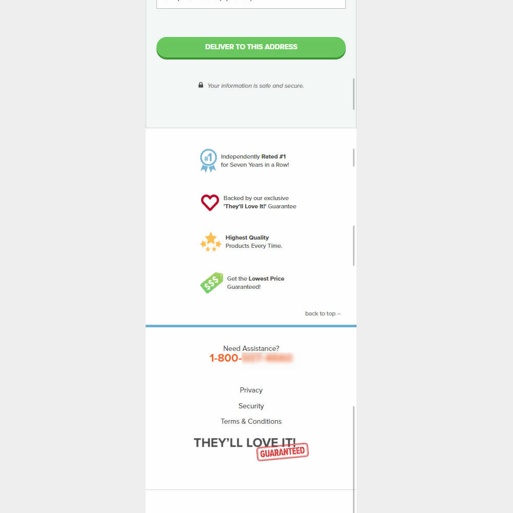 This was an experiment on the first checkout step where users would enter shipping information. The control had a longer footer with more additional sitewide links and a call to action to a newsletter. The variation removed these elements and kept the focus on the shipping information task. Impact on progression to next step and sales was measured.