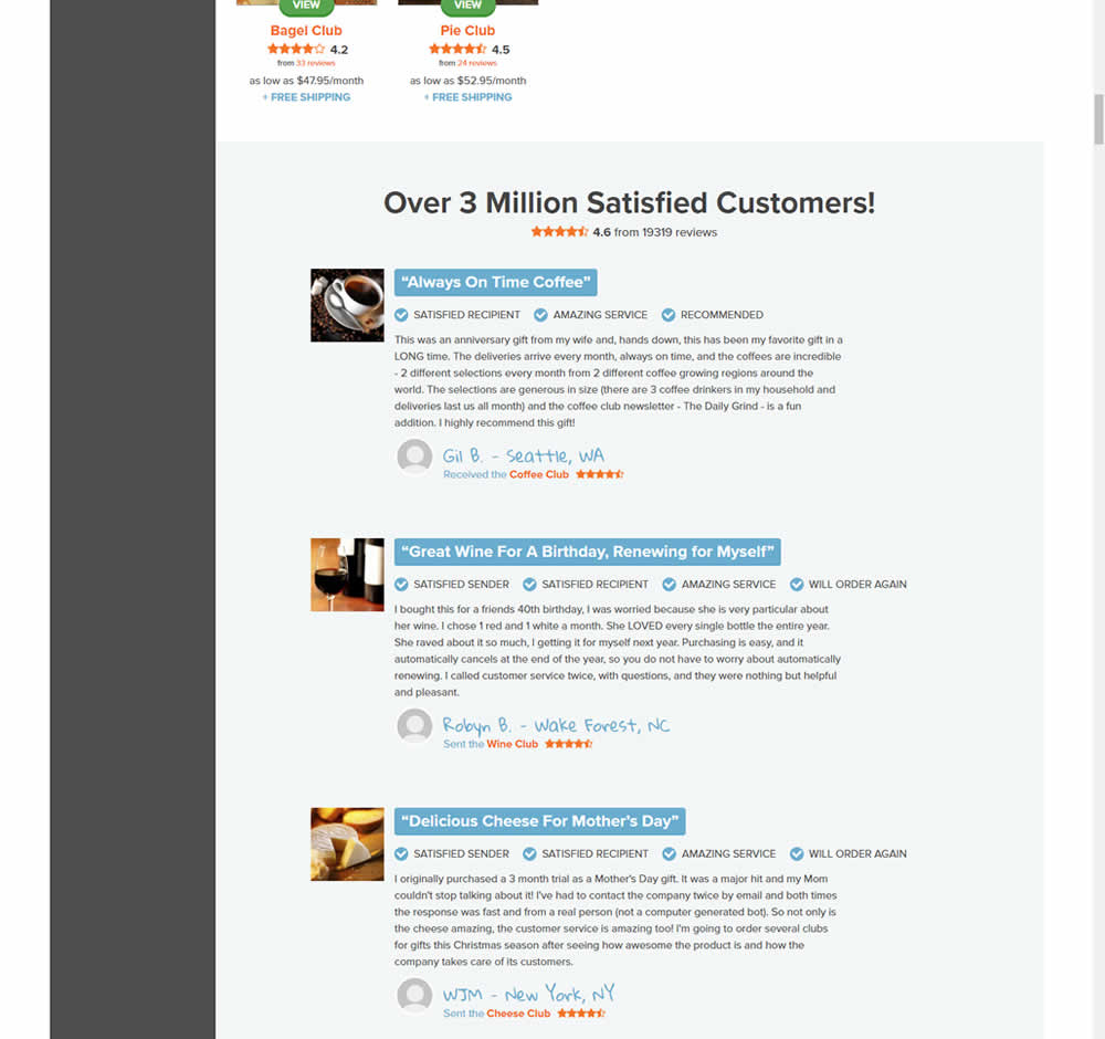 In this experiment, very short form testimonials (with a reference to over 3 million customers) were replaced with 3 more elaborate ones. These elaborate or benefit testimonials contained: highlighted statements, star reviews, emphasized location, tag summaries and photos of the purchased product. The control also contained a 3 testimonial carousel interaction.