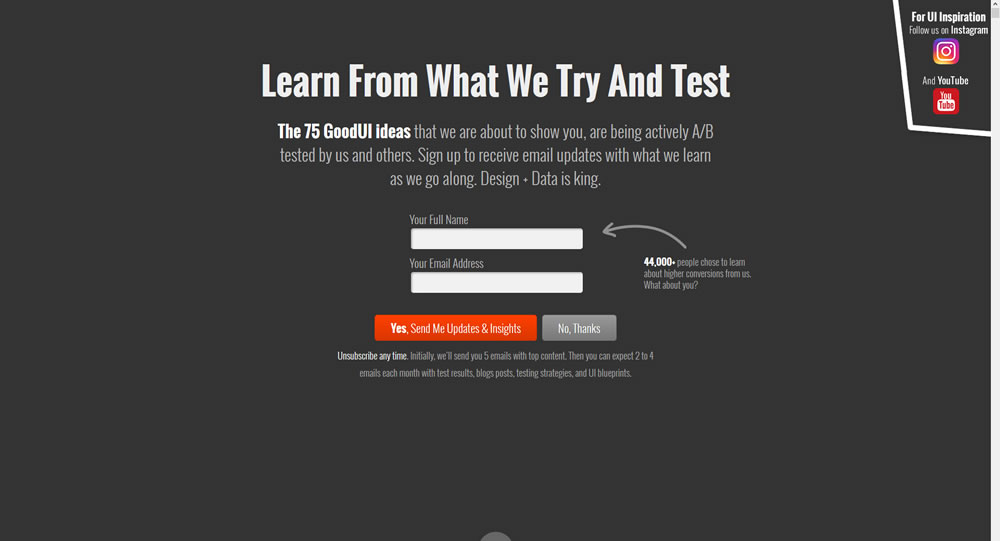 Jakub Linowski Tested Pattern #22: Empowering Headline In Test #263 On Goodui.org