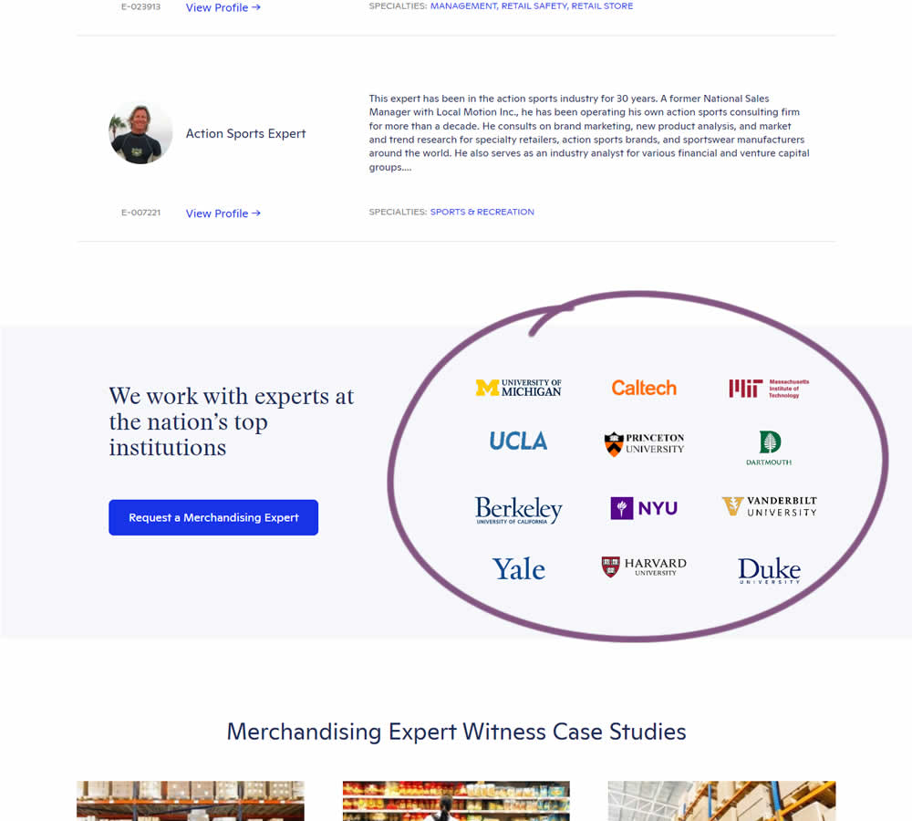In this experiment, supporting university logos were appended near the primary call to action for additional credibility. These logos were placed around the middle of long landing pages on Expert Institute's web site (where experts for legal advice are searched). Impact on total leads was measured.