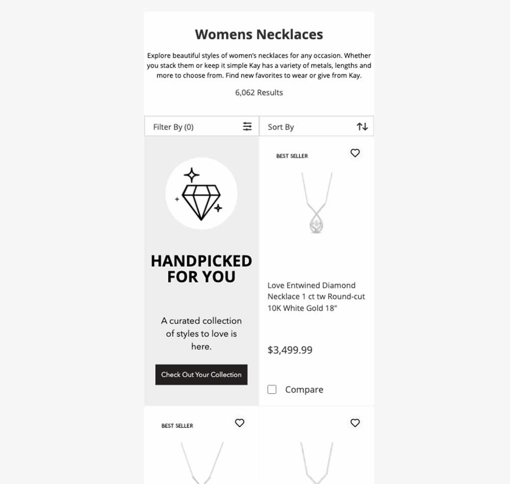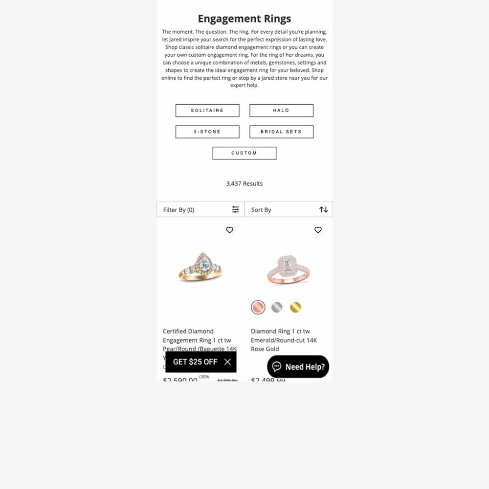 In this experiment, UI filters with metal color options were surfaced at the top of product listing pages (for Jared - an online jewelry retailer). Impact on filter usage, adds to cart and sales were measured.