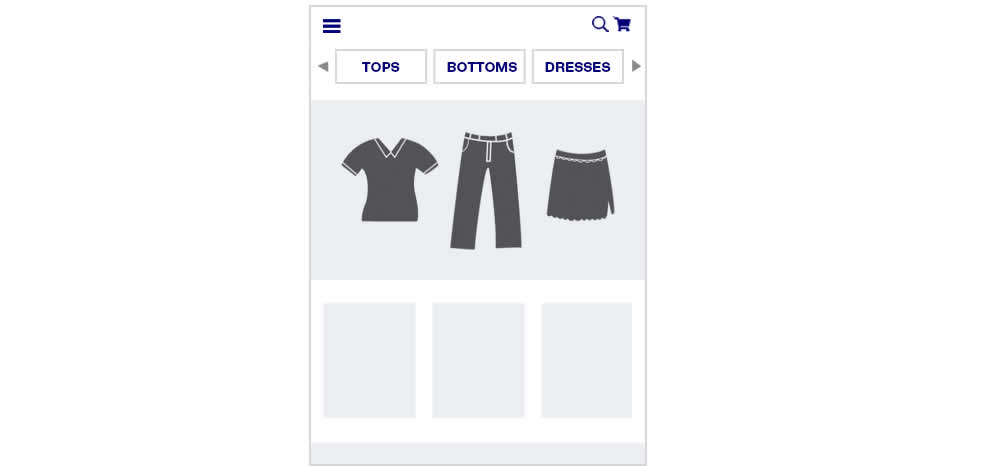 In this experiment, additional product categories were added at the top of the navigation.