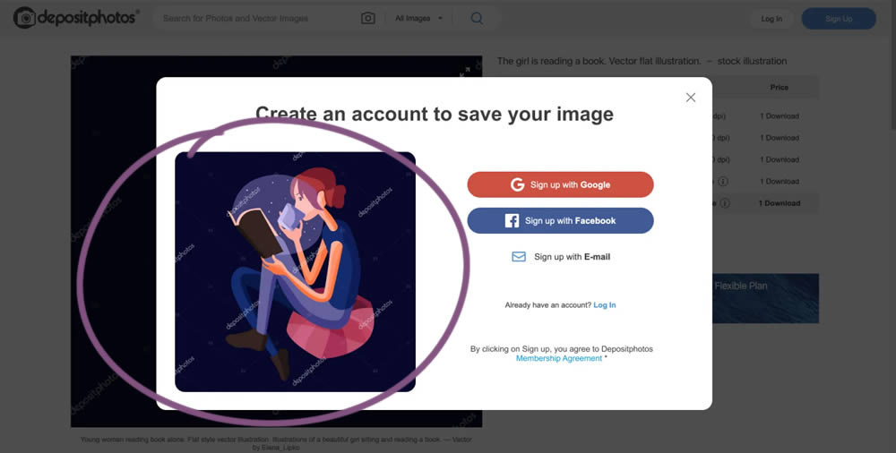 In this experiment from Conversionrate.store, the framing of the registration message was changed from a generic account creation one to a specific image selected by the user. The experiment started on a listing page of a stock photography / illustration site. The control showed a more generic message with benefits for signing up and making the purchase. Whereas the variation repeated the actual image that customers clicked on from listing pages - establishing continuity as well as providing a reason for signing up. Impact on sales was measured.