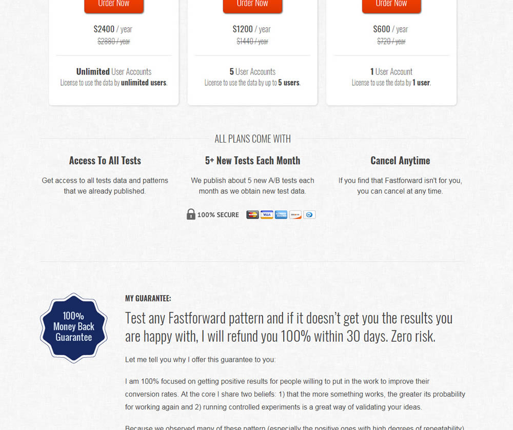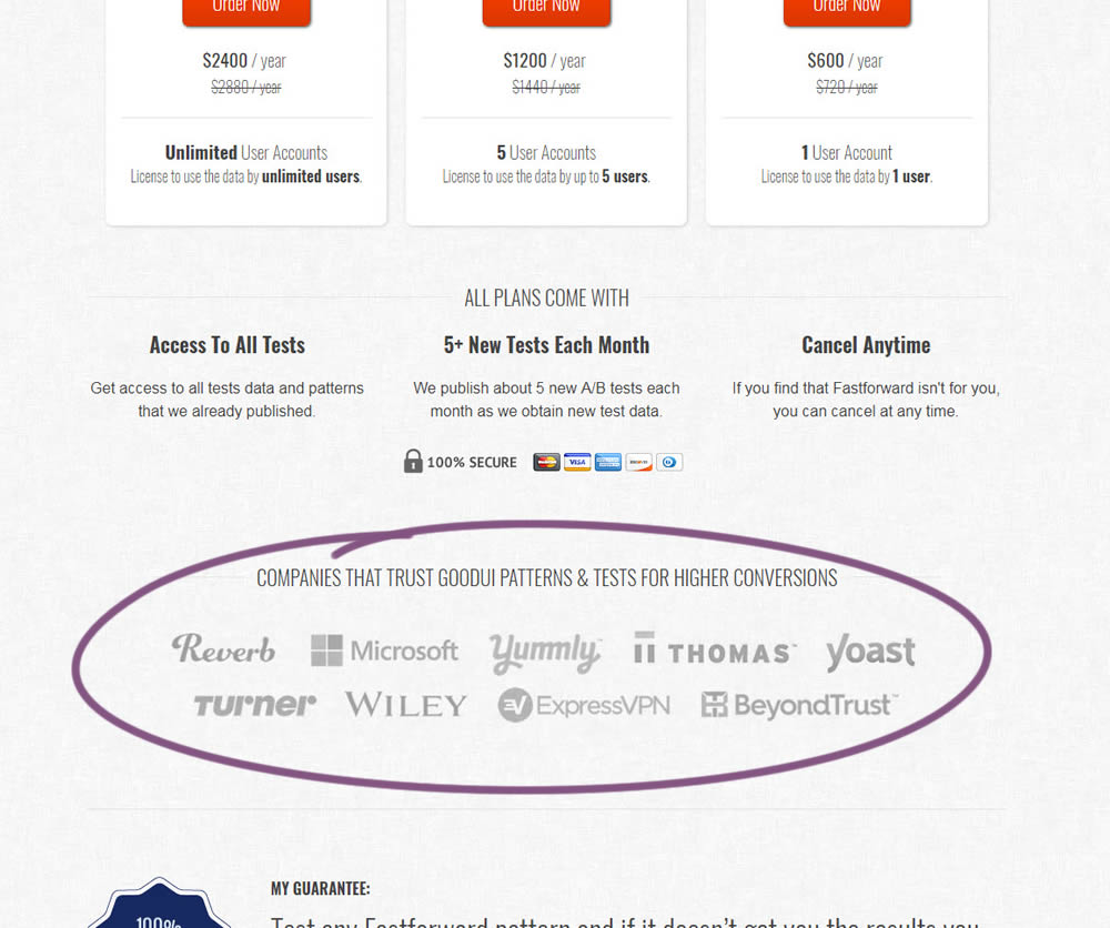 In this experiment, a handful of customers and contributors from GoodUI were added on a pricing page to test the effect on sales.