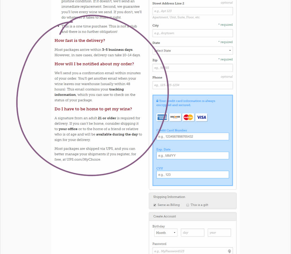 In this experiment, paragraph style copy was reorganized into a zig zag layout with key sections being reinforiced with copy-as-image statements. Impact on adds-to-cart and sales was measured.