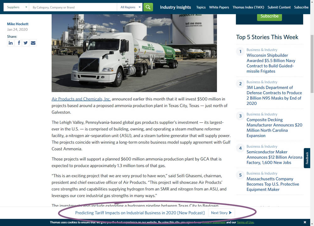 Kyle Phillips Tested Pattern #82: Onboarding Callouts In Test #322 On Thomasnet.com