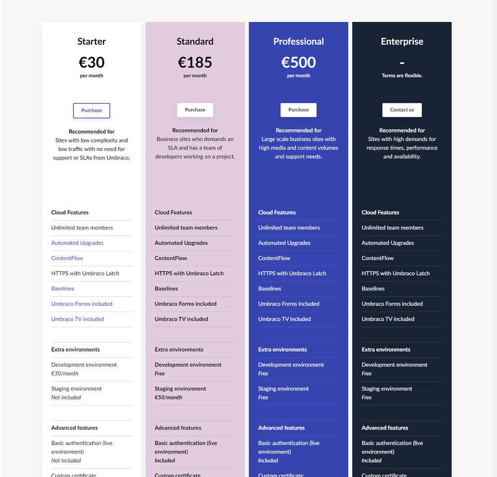 Lars Skjold Iversen Tested Pattern #115: Pricing Comparison Table In Test #294 On Umbraco.com