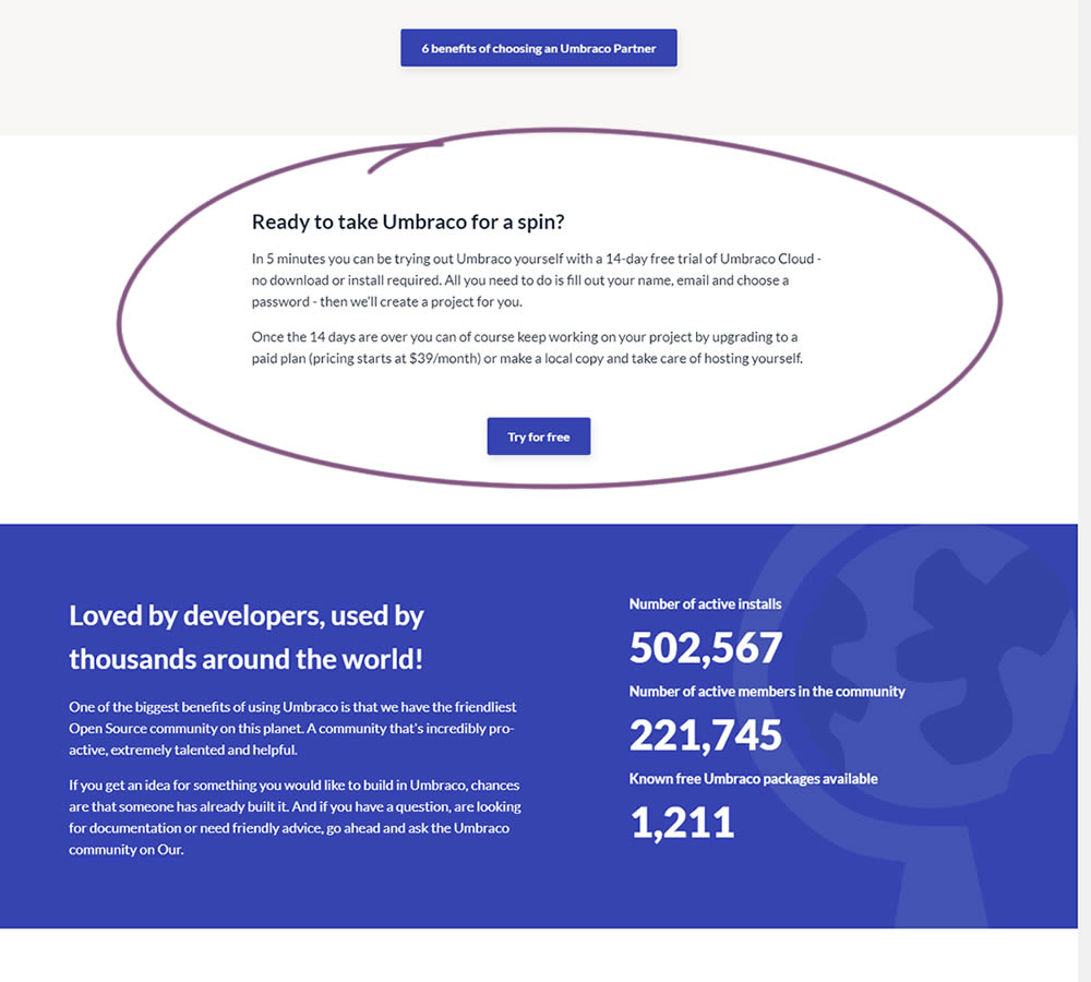 Lars Skjold Iversen Tested Pattern #60: Repeated Bottom Call To Action In Test #328 On Umbraco.com