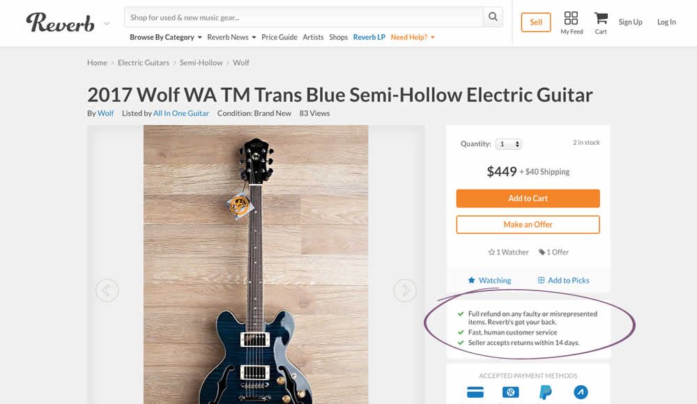 Nicholas Evans Tested Pattern #15: Bulleted Reassurances In Test #152 On Reverb.com
