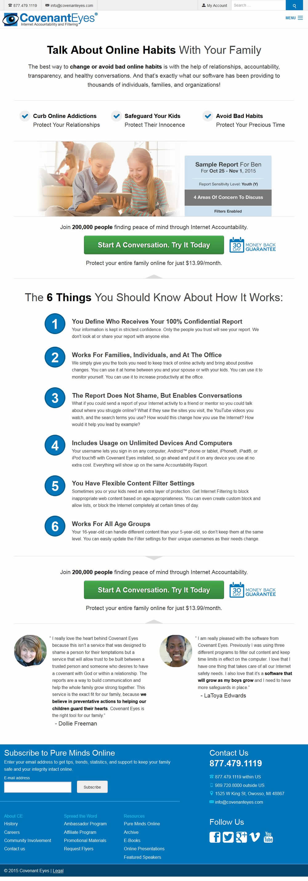 In the B variation, 3 blog posts were referenced at the bottom of the homepage. Each of the blog post articles also contained strong copy to present the problem the service was helping customers with (porn addition) - along with clear calls to start a subscription (the primary metric).