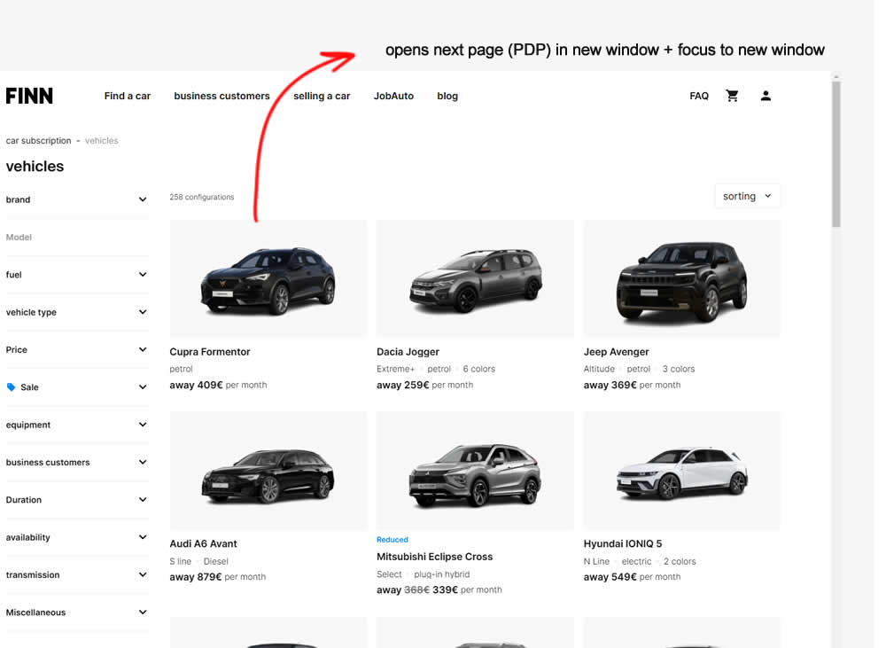 In this experiment, product listing were either opened in the same window (control) or opened in a new tab and focused on (variation). Impact on signups and sales was measured.