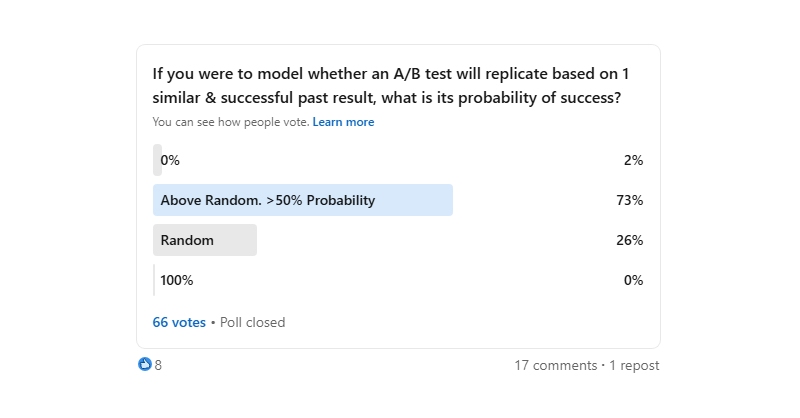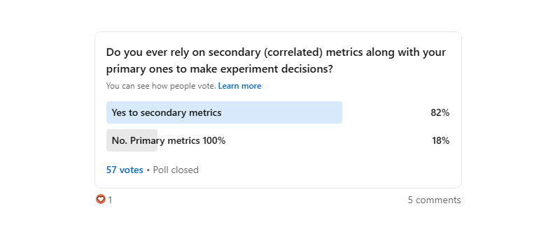 Over the last two years, I’ve run more than 40 LinkedIn polls on topics related to experiment design. The goal was to test, challenge, and refine common beliefs—and to engage more experienced practitioners in open discussion.